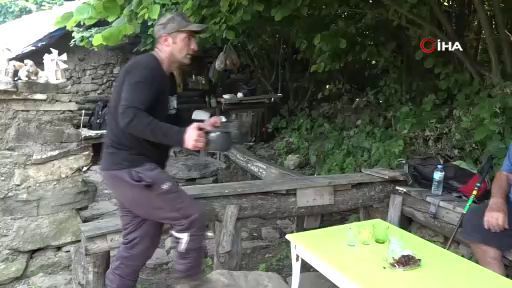 Bursa'da 10 yıldır dağda tek başına yaşayarak hayatını idame ettiren 38 yaşındaki İlhan Budak, bidonların içine beton dökerek yaptığı yaklaşık 200 kilogram ağırlıklarla antrenman yapıyor.