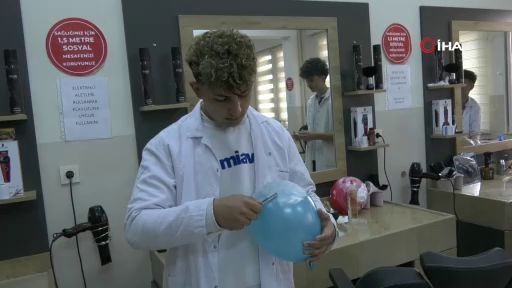Bursa'daki meslek ve teknik Anadolu lisesi öğrencileri hem eğitimlerini tamamlıyor, hem de meslek sahibi olup bir yandan da para kazanabiliyorlar. Gerçek müşteriyi tıraş edebilmek için Osmanlı döneminde kullanılan yöntem deneniyor. Şişirilen balona köpük sürülüyor. Öğrenciler jilet kullanarak köpüklü balonu patlatmazlarsa başarılı oluyorlar.