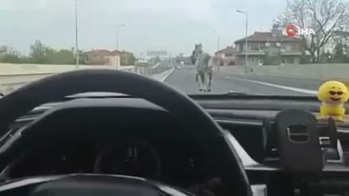 Büyükçekmece Çatalca yolunda başı boş at trafikte sürücülere zor anlar yaşattı. Araçların önüne atlayan at cep telefonu ile görüntülendi.