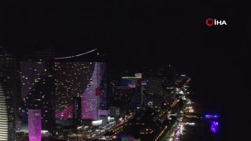 Gürcistan’ın Batum şehrinde bir dron pilotunun ışıklandırılan binaları görüntülediği sırada meteor düştü.