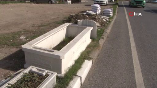 Büyükçekmece’de bir kadın mezar taşı yapan bir işletmenin teşhir amaçlı yol kenarına bıraktığı boş mezarın içine girdi. Yaşanan anlar güvenlik kamerası tarafından kaydedildi.