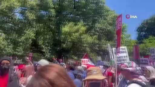 ABD’de binlerce Filistin destekçisi, Beyaz Saray’ın etrafını, üzerinde Gazze Şeridi’nde hayatını kaybeden Filistinlilerin isimlerinin yazdığı kırmızı dev bir pankart açarak kuşattı.