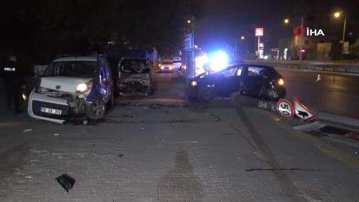 Bursa’da aracının direksiyon hakimiyetini kaybeden sürücü önce park halindeki 2 araca çarptı, ardından elektrik direğine vurarak durabildi.