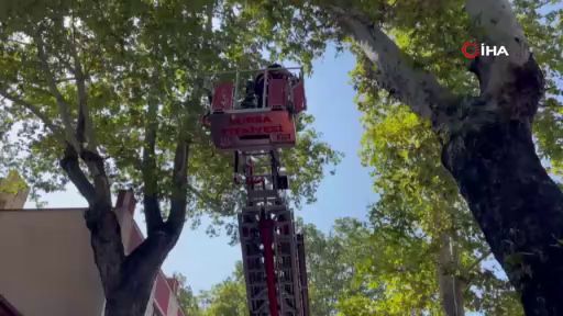 Bursa'da ağaçta mahsur kalan kuşu itfaiye kurtardı