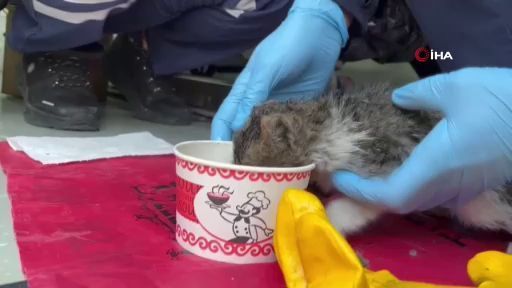 Bursa’da 2 fabrikayı küle çeviren yangında söndürme çalışmaları devam ederken, alevlerin arasında mahsur kalan yavru kedi itfaiye ekiplerince kurtarıldı. Duman isimli kediye sağlık ekipleri de oksijen verdi. Baygın haldeki kedi operasyon sonrası hayata döndü.