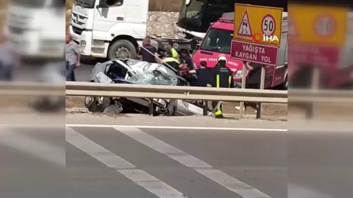 Bursa’da bariyerlere giren araç kullanılamaz hale geldi