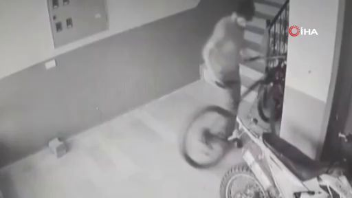 Bursa’da bir apartmandan bisiklet çalan hırsız güvenlik kameralarına saniye saniye yansıdı.
