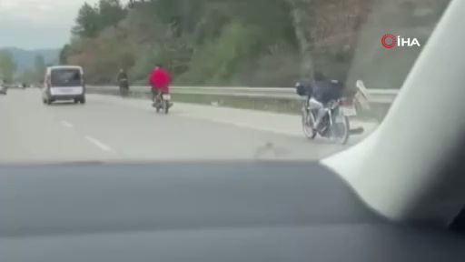 Olay, merkez Kestel ilçesi Ankara Yolu Caddesi'nde meydana geldi. Edinilen bilgiye göre, kendi canını tehlikeye atan sürücü, motosikletin üzerine uzanarak seyretti. Bir süre böyle giden sürücü, daha sonra ara sokaklara girerek gözden kayboldu.