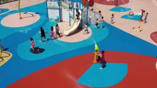 Sukaypark bünyesindeki 'Su Oyunları Parkı'nda çocuklar hem eğlendi hem de serinledi.