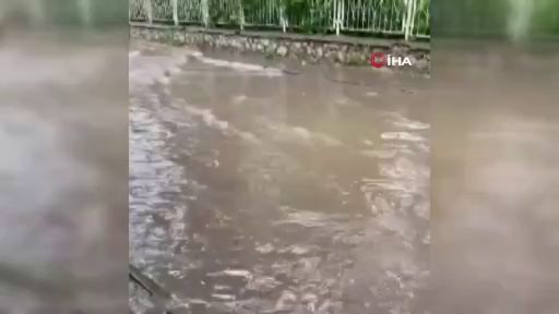 Bursa’nın İnegöl ilçesinde şiddetli yağmurun etkisiyle sokak ve caddeler göle döndü. Bisikletiyle yolda ilerlemeye çalışan bir vatandaş ise derinliği kestiremeyince suya battı. O anlar, kameraya saniye saniye yansıdı.
