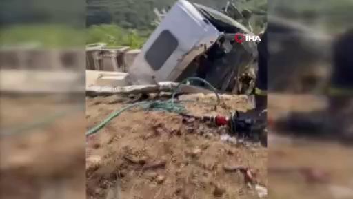 Bursa'da aynı firmaya ait iki beton mikseri kafa kafaya çarpıştı. Savrulan araçlardan biri yola, diğeri viyadüğe devrildi. Feci kazada viyadüğe uçan sürücü hayatını kaybederken, diğer sürücü ise ağır yaralandı.