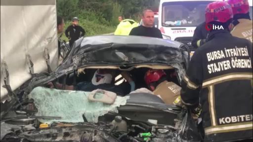 Bursa’da feci kaza, otomobil TIR'a ok gibi saplandı: 2 yaralı