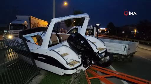 Bursa'nın İnegöl ilçesinde bariyerlere çarpan kamyonetin taşıdığı yarım milyonluk yat kullanılamaz hale geldi.