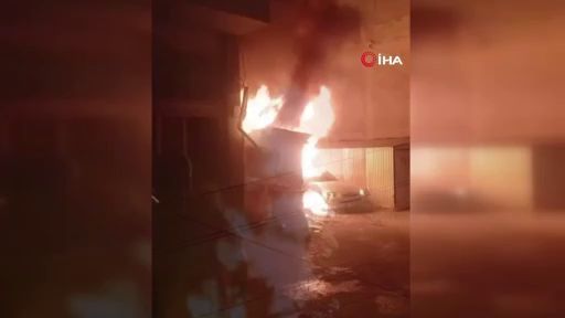 Bursa'da garajda çıkan yangın sonrası park halindeki 2 otomobil alev alev yanarak kullanılamaz hale geldi.