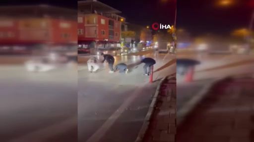 Bursa'da dört genç caddenin karşısına birdirbir oynayarak geçti. O anlar cep telefonu kamerasına yansıdı.
