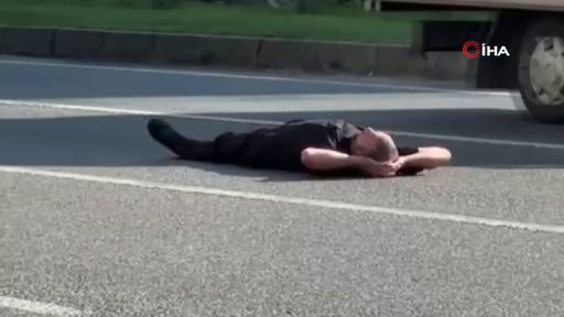 Bursa'nın Orhangazi ilçesinde sabah saatlerinde yaşanan ilginç olayda bir şahıs trafiğin yoğun olduğu ana yolun ortasına yattı. Sürücüler korna çalarak vatandaşı uyarsa da o rahatını hiç bozmadı.