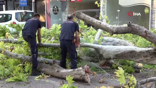 Bursa’da kökleri çürüyen asırlık çınar ağacı devrildi