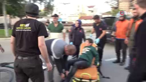 Bursa’da yemek siparişine giden motokurye hızla ilerlerken, karşısına çıkan bisikletli çocuğa çarptı. Yaralı çocuk kaza yerine gelen babasını sakinleştirirken, telefonla arayan annesine de “Ben iyiyim, sen üzme kendini anne” dedi. O anlar kameraya anbean yansıdı.