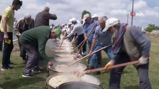 Bursa'da köyündeki evleri, cami ve okulu boyayarak seçim kazanan muhtar şimdi de 38 koyun, 3 dana, 2 ton buğday ve pirinçten 55 kazan pilav pişirip köy halkına dağıttı.