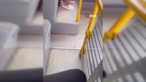 Bursa'da belediye otobüsünde iki kişi arasında tartışma çıktı. Taraflardan biri tanımadığı şahsı otobüsün içinde tekme tokat darp etti. O anlar kameraya yansırken, şüpheli verdiği ifadede "Komutanıma bıçak çekmişti" diyerek kendisini savundu.