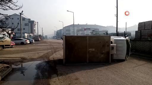 Bursa'nın İnegöl ilçesinde otomobil ile çarpışan kamyonet devrildi, 2 sürücü yaralandı. Kaza anı bir işyerinin güvenlik kamerasına saniye saniye yansıdı.