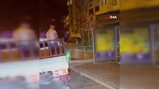 Bursa’da açık kasa kamyonetle gelen bir grup genç, otobüs durağında bekleyen kişinin üzerine yangın söndürme tüpü püskürterek hızla kaçtı. O anlar kameraya anbean yansıdı.