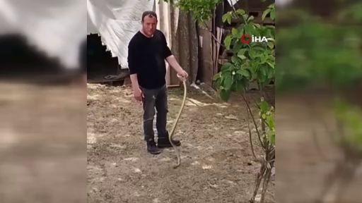 Bursa'da soğukkanlı vatandaşın yılanla imtihanı