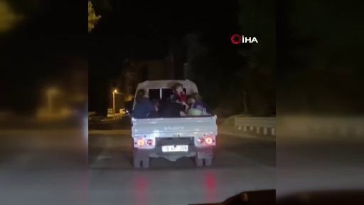 Bursa'da açık kasa kamyonetin arkasında tehlikeli yolculuk yapan çok sayıda kişi kameraya yansıdı.