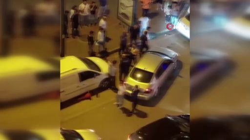 Bursa'da trafikte tartışma yaşayan iki grup arasında çıkan kavgada taraflardan biri yol kenarındaki dubayı kavga ettiği kişinin kafasına fırlattı. O anlar kameraya yansıdı.