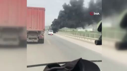 Bursa’da seyir halindeki bir kamyonet alev alev yandı. O anlar trafikteki diğer sürücülerin kamerasına yansıdı.