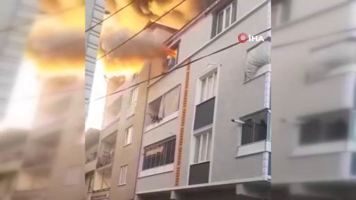 Bursa'nın Gürsu ilçesinde 3 katlı binanın çatı katının alevlere teslim olduğu anlarda babaanne ve torunu vatandaşların gerdiği battaniyenin üzerine atlayarak kurtuldu.