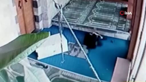Gaziantep'te bir şahıs, girdiği camide çalmak istediği yardım kasasının altında kalarak yaralandı. O anlar camideki güvenlik kameralarına saniye saniye yansıdı.