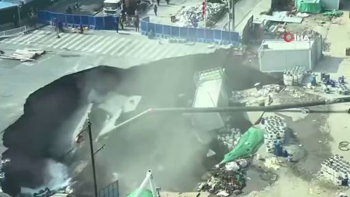 Çin'in Şanghay kentinde metro inşaatı sırasında yolun çökmesi sonucu dev çukur oluştu.