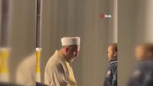 Maltepe'de bir camide dua okuyan imamın yanına giden bir çocuk, imamın yüzüne dokunarak sempatik görüntüler oluşturdu. İmam ile çocuğun yürek ısıtan anları kameraya yansıdı.