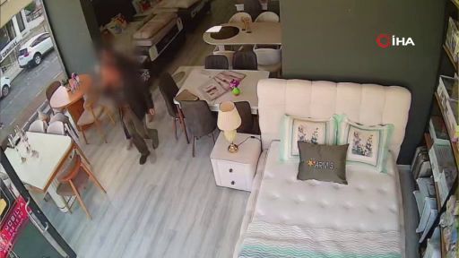 Samsun'un Atakum ilçesinde bir şahıs, eşini çalıştığı mobilya mağazasında darbetti. O anlar iş yerinin güvenlik kameralarına yansıdı.