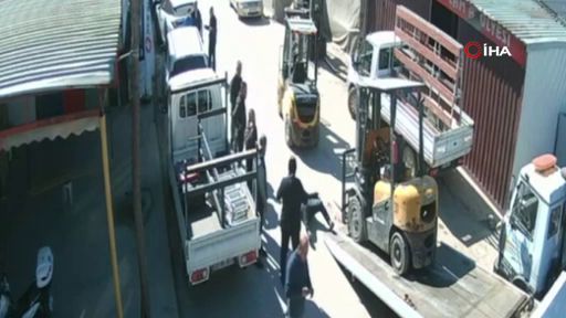 Edirne Sanayi Sitesi'nde forkliftlerin arasına giren bir işçinin feci şekilde can verdiği kaza saniye saniye kameralara yansıdı.