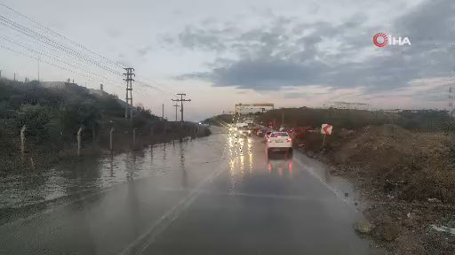 Bursa'nın Gemlik ilçesinde sel suları karayolunu kapsayınca ulaşım aksadı.