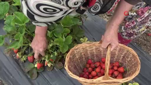 Bilecik'te hobi olarak çocukları için bir dönüm tarlada 50- 60 fide dikerek çilek yetiştirmeye başlayan Yalçın Nar, 5 yılda 40 dönüme çıkan arazisindeki fide sayısı 100 bin köke çıktı.