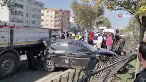 Bursa'nın İnegöl ilçesinde makas atmaya kalkan otomobil, aydınlatma direğine, ağaca ve tıra çarparak durabildi. Kazada 2 kişi yaralandı.