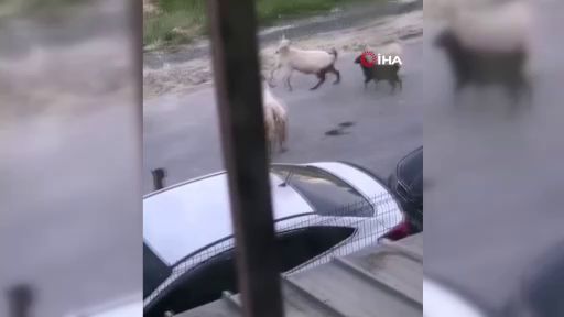 Arnavutköy’de keçi sürüsü bir otomobilin üzerine çıkarak tepindi. Keçilerin tepindiği otomobilde çizikler oluşurken, o ilginç anlar cep telefonu kamerasıyla görüntülendi.