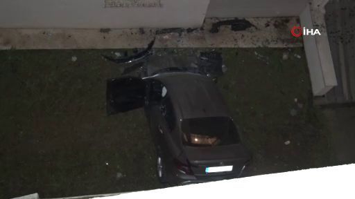 Kontrolden çıkan otomobil binanın 3’üncü katına çarptı