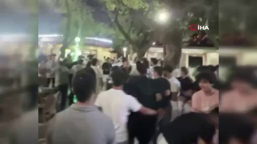 Bursa’da iki grup arasında çıkan ve tekme, yumruk ile sandalyelerin havada uçuştuğu meydan muharebesi gibi kavgada kameraya yansıdı.