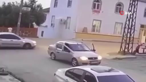 Hatay’ın Erzin ilçesinde bir motosikletin otomobile ok gibi saplandığı ve sürücüsünün havaya uçtuğu anlar güvenlik kamerasına yansıdı.