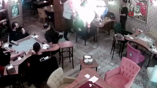 Küçükçekmece’de, iddiaya göre oğlunun okey oynamasına sinirlenen baba, okey masasındaki herkesi ıstaka ile dövdü. O anlar güvenlik kamerasına yansıdı.