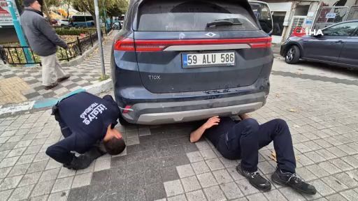 Tekirdağ'da park halindeki otomobilin arka lastik kısmına giren kedi, itfaiye ekiplerinin hava tüpüyle yaptığı dikkatli çalışma sonucu zarar görmeden kurtarıldı.