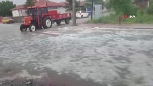 Çorum'un Alaca ilçesinde etkili olan sağanak ve dolu yağışı hayatı olumsuz etkiledi.