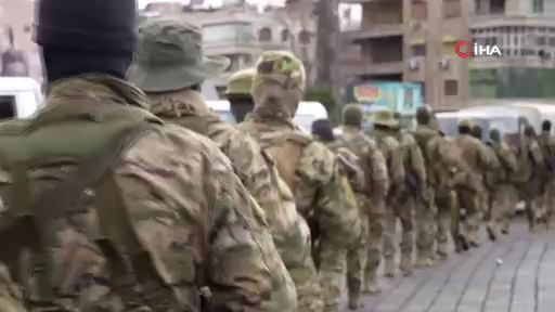 Suriye’de Esad rejiminin devrilmesinin ardından kurulan yeni yönetime bağlı askerler, başkent Şam'da gövde gösterisi yaptı.