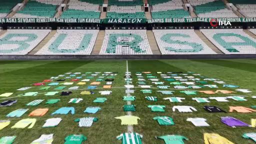 Bursa Atatürk Spor Kompleksi Matlı Stadyumu'nda zemine konulan yüzlerce imzalı forma gökyüzünden görüntülendi.