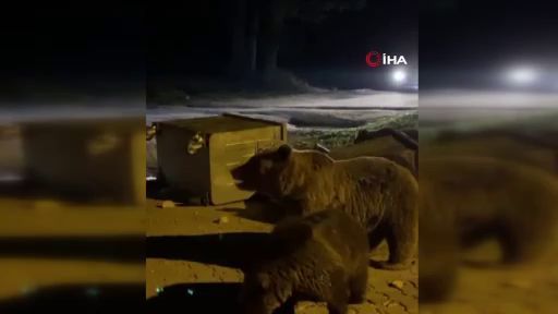 Uludağ'da 2 ayı ailesinin ve bir tilkinin yiyecek arayışı kameralara yansıdı.